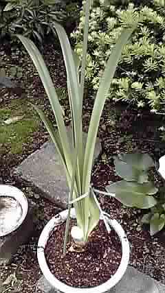 で、なんだか茎を切っておけば来年も咲くらしい、というわけでちょっきんしてみた。で、葉がでろ~んてなるので支柱たててみた。→